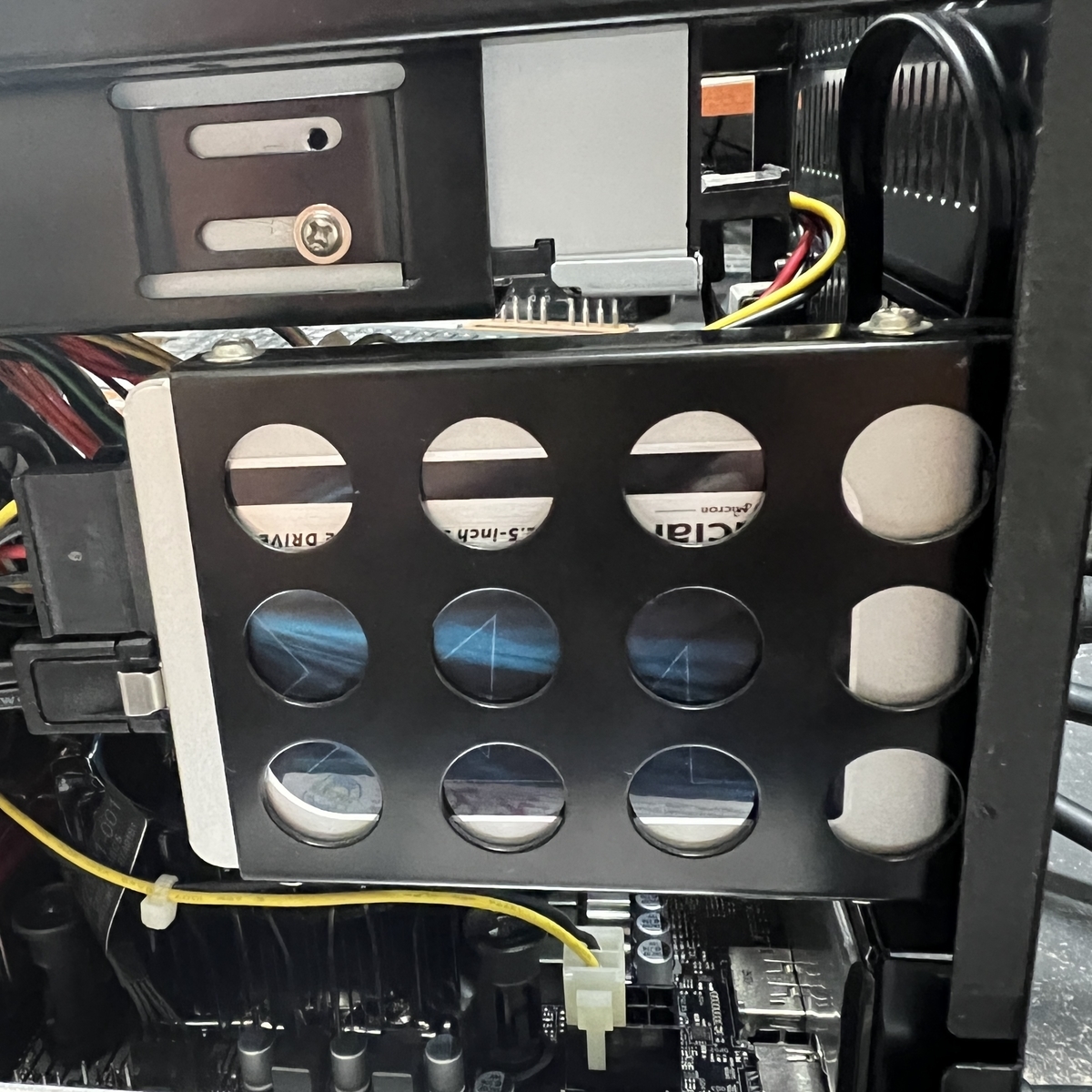 システムドライブが故障した時のバックアップも兼ねて2.5インチのSSD 500GBを搭載しています。今は、ドロップボックスに保存しているのでパソコンの復旧は、楽になりました。